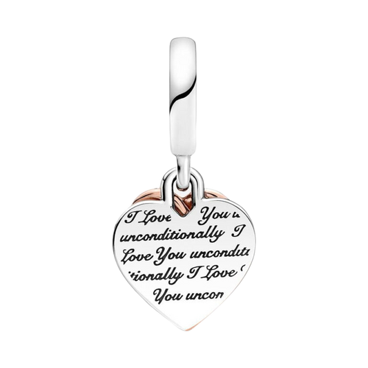 Charm Colgante Doble Corazón Candado Giratorio en Dos Tonos