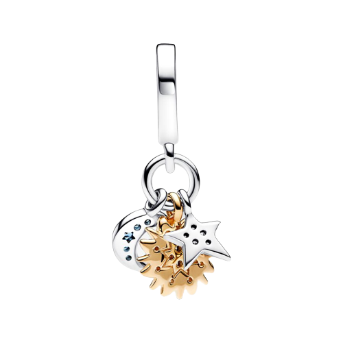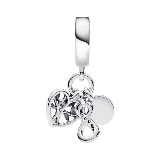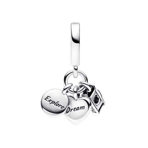 Charm Colgante Triple Cámara, Corazón y Brújula