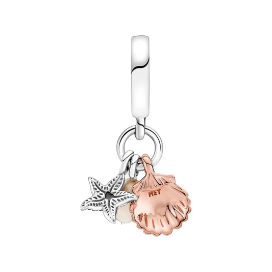 Charm Colgante Triple Concha, Perla Cultivada de Agua Dulce y Estrella de Mar
