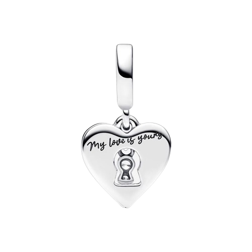 Charm Colgante Doble Corazón Candado Giratorio en Dos Tonos
