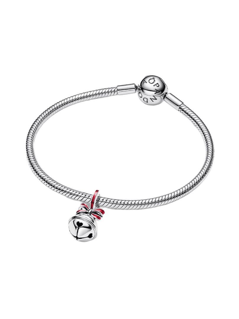 Como dice el villancico... "Jingle all the way". Este Charm Colgante Campana Navideña en plata de primera ley se presenta adornado con brillante esmalte de color rojo y una anilla con un lazo que le aporta un toque navideño. Llévalo solo o combínalo para crear un look de brillos extra navideños.