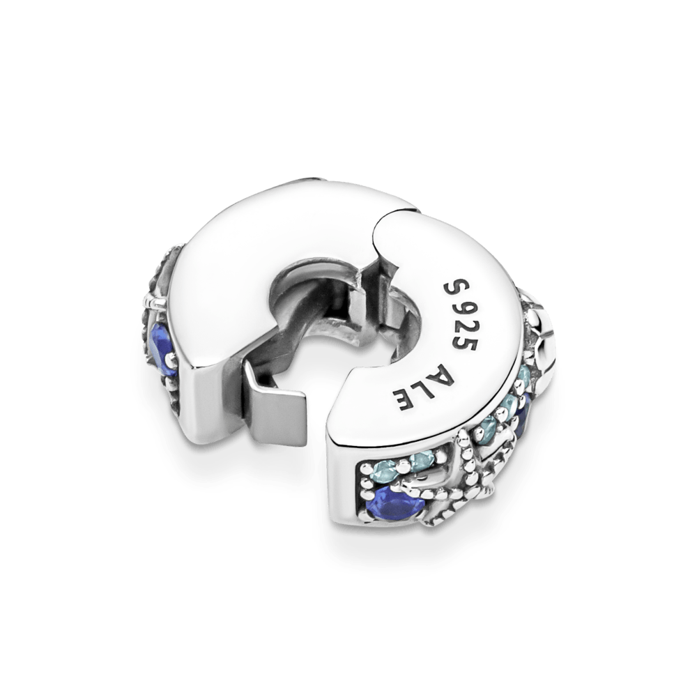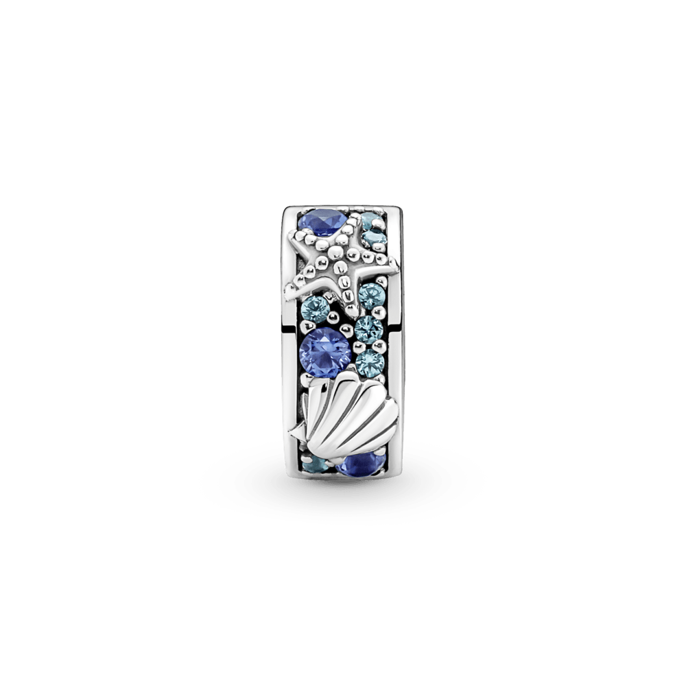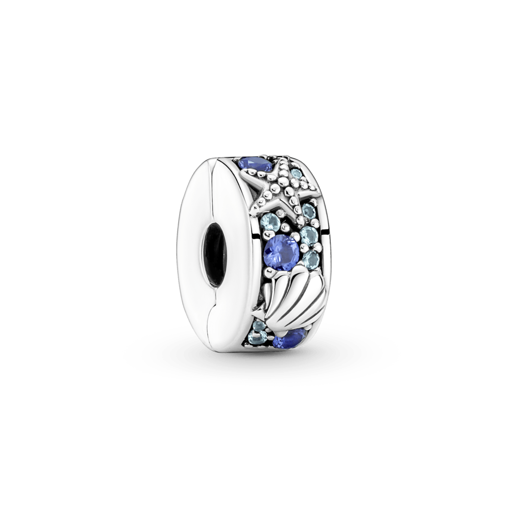 Imagina días soleados en la arena y surfeando con el sujetador Estrella de mar y concha tropical. Inspirado en los tesoros que se encuentran en la playa, tiene conchas y estrellas de mar rodeadas por detalles de cristales sintéticos azules y turquesa en pavé que representan las brillantes olas del océano. Este sujetador tiene un agarre de silicona para mantenerlo en su lugar, lo que significa que no encaja en las dos roscas (separadores de charms realzados). Se le puede dar estilo en cualquier otro lugar en tu brazalete para una vibra payera, despreocupada.