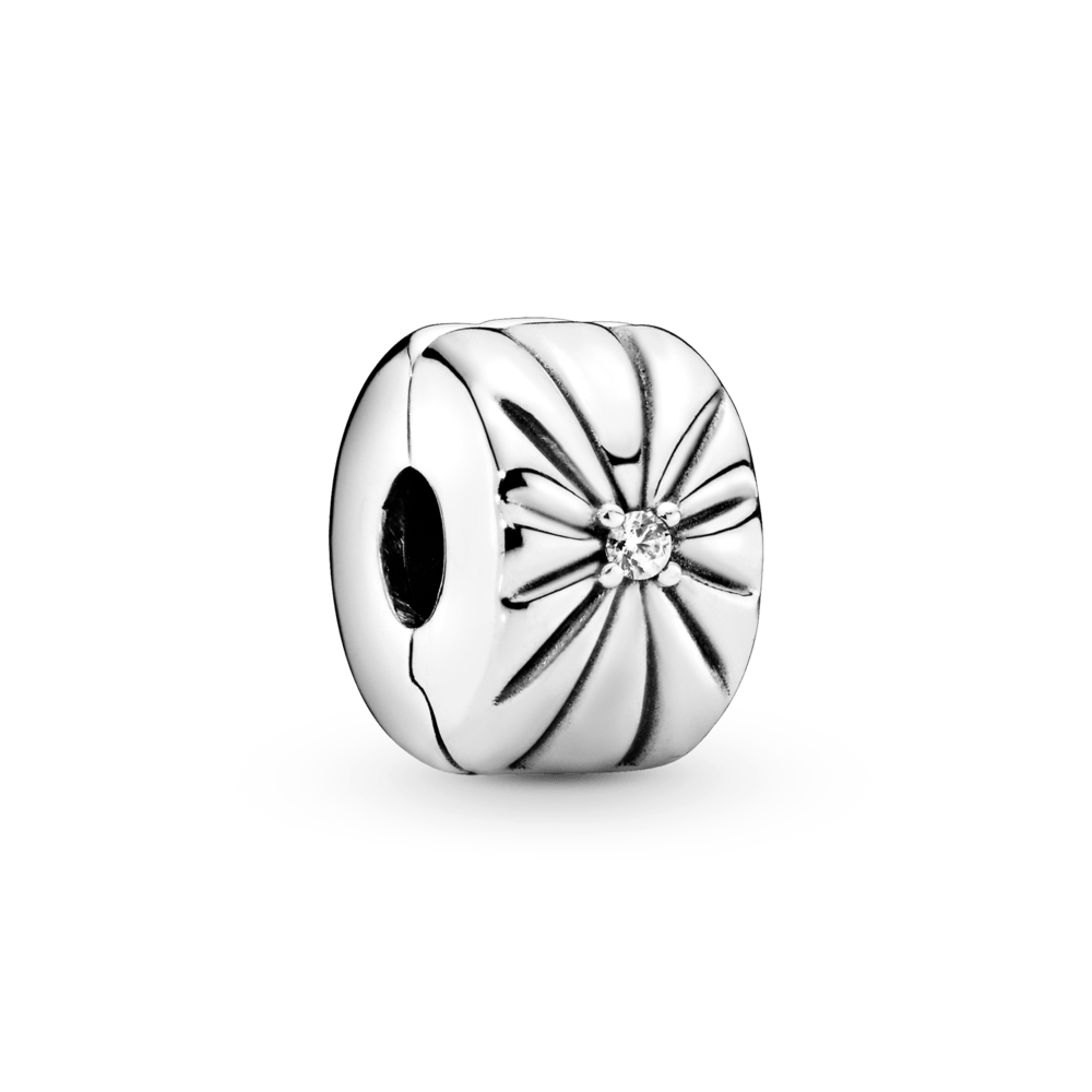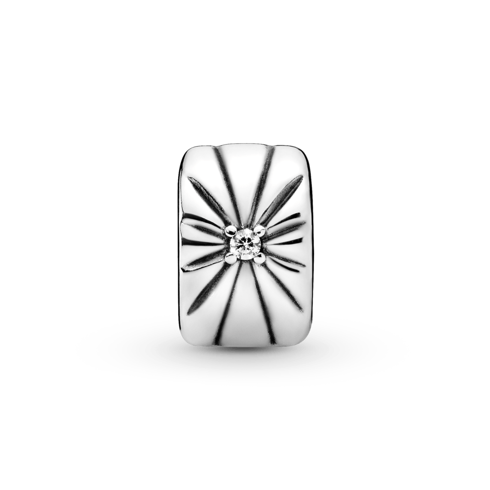 Puedes llevar siempre un brillante rayo de sol para iluminar tu camino gracias a este clip sujetador Rayo de sol resplandeciente. Un abalorio de dos piedras forma el centro del rayo y es el punto focal del charm, cuya elegancia está marcada por su engañosa simplicidad que le brinda el toque exacto de brillo. Usa el charm de plata solo o combínalo con otros charms para crear un estilo único que ilumine tu camino en los próximos años.